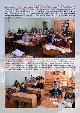 студенческой жизнью, кружками и секциями. На занятиях дисциплина в группе хорошая, преподавате-