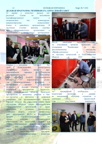 бирской области. На отраслевом совете были ства участников чемпионата.