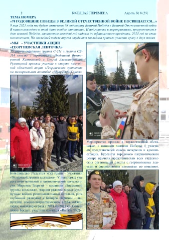 В нашем колледже к этой дате особое отношение. И подготовка к мероприятиям, приуроченным к и второго курса в актовом зале колледжа состоя- прадедов, совершенный в годы Великой Отече-