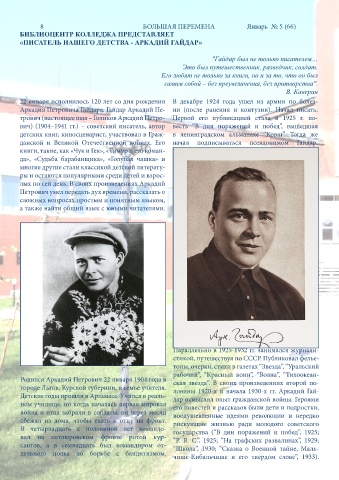 «ПИСАТЕЛЬ НАШЕГО ДЕТСТВА - АРКАДИЙ ГАЙДАР»