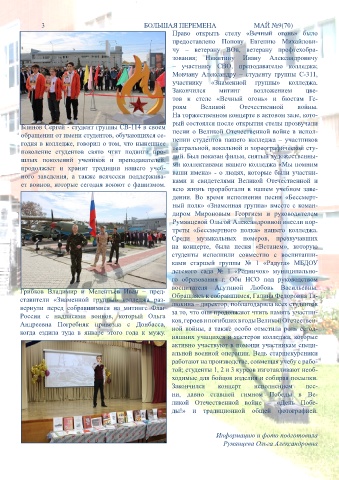 продолжает и хранит традиции нашего учеб- ми коллективами нашего колледжа «Мы помним