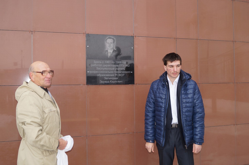 1 ноября состоялась торжественная церемония открытия мемориальной доски Зелинского Эдуарда Карловича – заслуженного учителя профессионально-технического образования РСФСР, кавалера ордена Трудового Красного Знамени, мастера производственного обучения, а затем и директора профессионального училища № 2 – ныне Новосибирского технического колледжа им. А.И. Покрышкина.