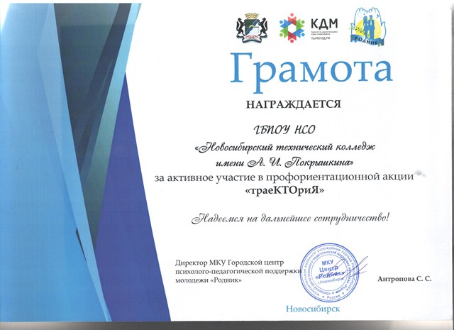 19 сентября в ДК им. Максима Горького проходила профориентационная акция «ТроеКТО риЯ». Акция проводилась в целях создания условий для эффективного профессионального самоопределения, профессиональной самореализации, повышения конкурентоспособности молодежи, в соответствии с запросами современного рынка труда. Мероприятие было организовано для учащихся 8- 11 классов. В акции приняли участие 450 абитуриентов, для которых проводились презентации учреждений высшего и среднего профессионального образования Новосибирска. Специалист Центра по профориентации нашего колледжа Сбитнева Валентина Николаевна уже не первый раз принимает участие в таких мероприятиях. Именно благодаря ей многие первокурсники в этом году выбрали наш колледж.