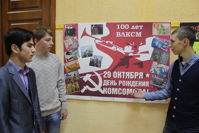 Студенты нашего колледжа приняли участие в мероприятиях посвященных 100- летию Всесоюзного Ленинского Коммунистического Союза Молодежи. Ребята встречались с ветеранами комсомола разных лет: Поповым Евгением Михайловичем, Ниной Николаевной Шалабаевой, Александром Петровичем Балабановым. Преподаватель истории Трубачева Елена Алексеевна провела в группах второго курса урок, посвященный подвигам комсомольцев в годы Великой Отечественной войны. После урока был организован просмотр фильма «Молодая гвардия» о бессмертном подвиге комсомольцев Краснодона. В библиотеке колледжа организована выставка литературы - «Эпоха юности и побед». В музее колледжа прошел урок - «Комсомол – вожак рабочей молодежи», на котором ребята узнали о трудовых подвигах комсомольцев профессионального училища №2 ( так раньше назывался наш колледж).