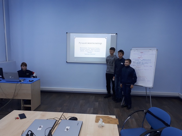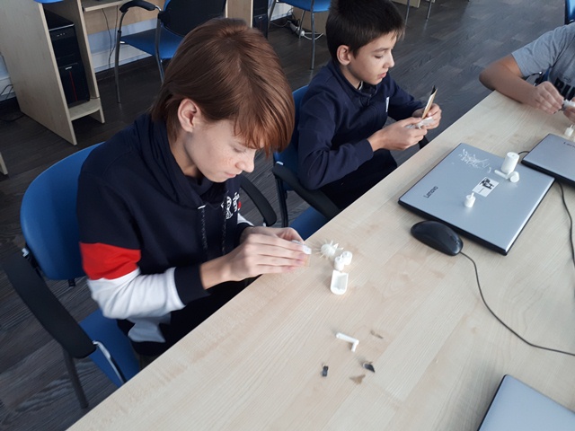 В течение двух дней ребята в компетенции «Изготовление прототипов», под руководством студента группы А-361 Киснер Якова Юрьевича учились моделировать механизм «Ручной вентилятор». В первый день создали 3D- модель «Ручного вентилятора» и распечатали на 3D-принтере. Во второй день задачей участников была обработка моделей, сборка и проверка их работоспособности. В процессе обработки деталей ребятам помогала Наталья Сергеевна Кривошеева, учитель школы №7.