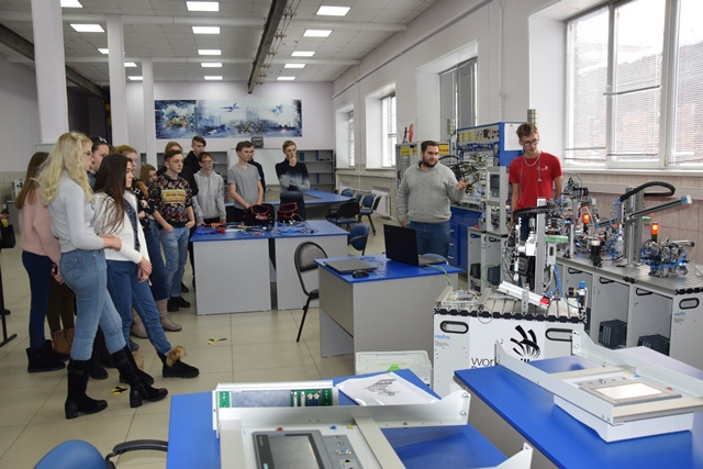 Наши преподаватели и студенты провели экскурсию по колледжу, рассказали о специальностях, познакомили с оборудованием, мастерскими, лабораториями. Огромный интерес школьники проявили к разрывной машине, предназначенной для проведения статических испытаний в кабинете контроля качества. Конечно же, манипулятор, роботы, мехатронные станции не оставили равнодушным ни одного гостя нашего колледжа. Затаив дыхание, ребята наблюдали за работами в новой лаборатории робототехники. А в ресурсном центе сварки им удалось не только увидеть работу сварщика, но и самим попробовать сварить свой первый шов на тренажере виртуальной сварки «Солдаматик».
