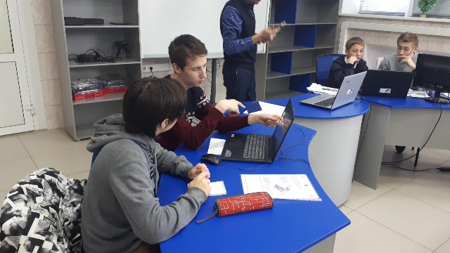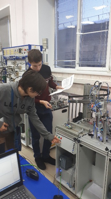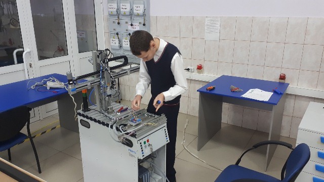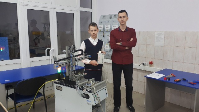 За два часа учащиеся школ познакомились с основами монтажа, сборки, пуско-наладке и программированию производственных линий и роботов. Выполнили профессиональные задания на мобильных станциях под руководством наставника-студента колледжа Киснер Якова.