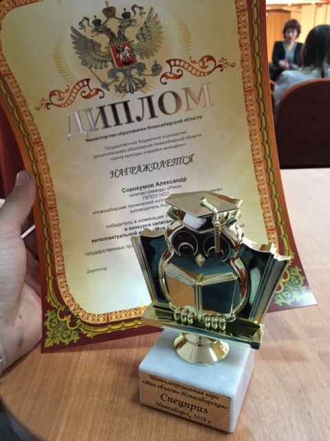 Наша команда «РИСК» достойно защищала честь колледжа. Капитан команды Сорокоумов Александр стал победителем в номинации «Специальный приз» в конкурсе капитанов команд.