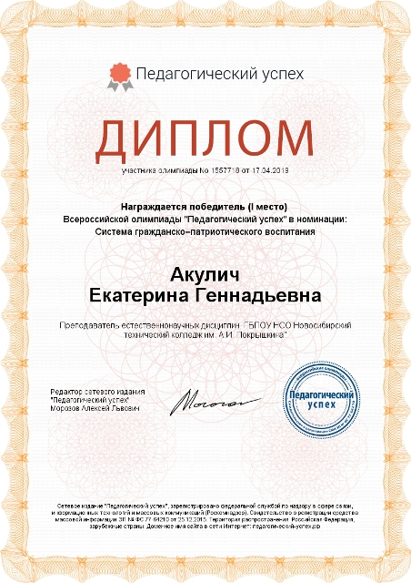 ПОБЕДА ВО ВСЕРОССИЙСКОЙ ОЛИМПИАДЕ «ПЕДАГОГИЧЕСКИЙ УСПЕХ»!