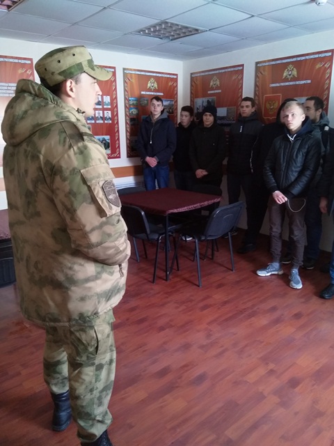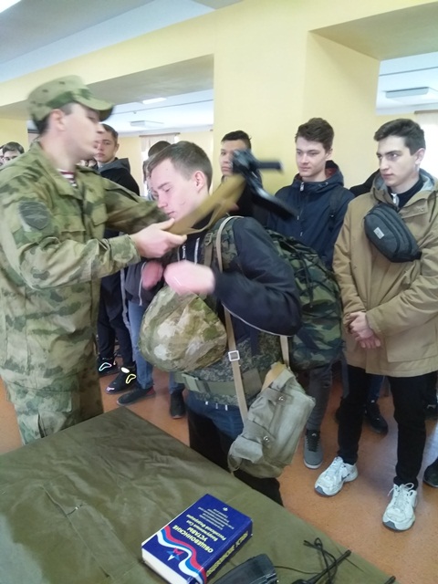 Наши студенты познакомились с организацией и правилами несения внутренней службы в подразделении, со всеми видами помещений роты. Узнали, что такое бытовая комната, комната досуга, канцелярия и т.д. Ознакомились с правилами несения службы нарядов в автопарке, КПП. Примерили экипировку и вооружение воина-связиста. Посмотрели средствами связи, которые используются в армии, несколькими моделями передвижных радиостанций, увидели рабочее место воина-связиста, ознакомились с порядком и последовательностью развёртывания передвижной радиостанции. Вспомнили последовательность неполной разборки и сборки автомата АК-74. Так что в течение этих дней наши студенты узнали много нового и интересного. Хотя погода была очень холодной и ветреной, но, как говорится: «Военнослужащий должен стойко переносить все тяготы и лишения воинской службы». Сборы прошли успешно, а все полученные студентами знания надолго останутся в памяти и помогут им в дальнейшей службе в вооружённых силах Российской Федерации.