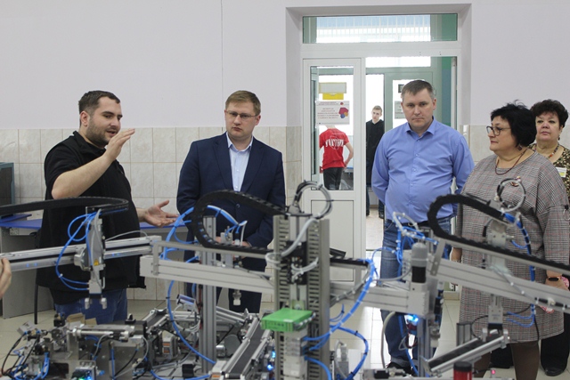 Алексей Николаевич осмотрел Ресурсный центр сварочного производства колледжа, Центр мехатроники и автоматизации производства, Лабораторию мобильной робототехники, Лабораторию контрольно-измерительных приборов и систем автоматики, побеседовал с педагогами и студентами об учебном оборудовании и роли его в образовательном процессе.