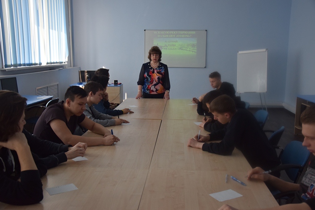 В викторине приняли участие студенты 1 курса групп: С-111, С-112 и группа 3 курса – С-312. Ребята показали неплохие знания по страноведению и истории Германии, с удовольствием отвечали на вопросы викторины. Затем все участники посмотрели фильмы «Города мира. Германия» и «Достопримечательности Германии».