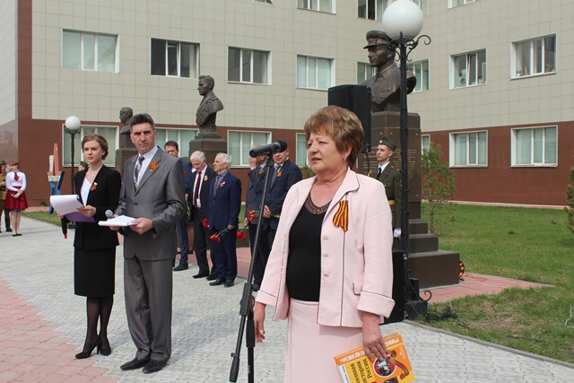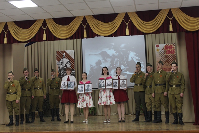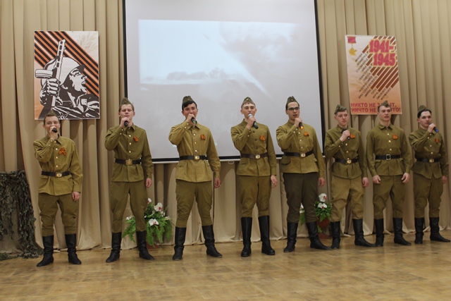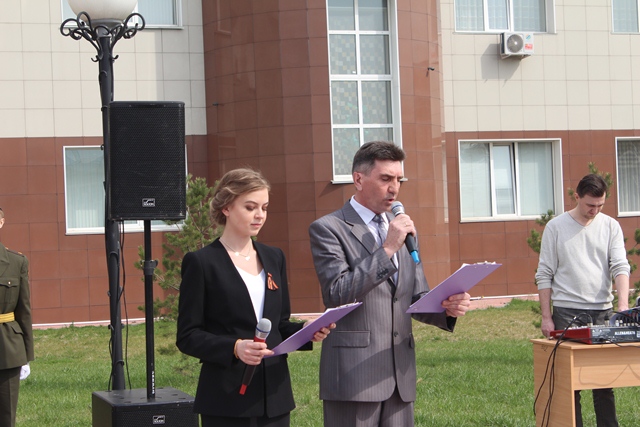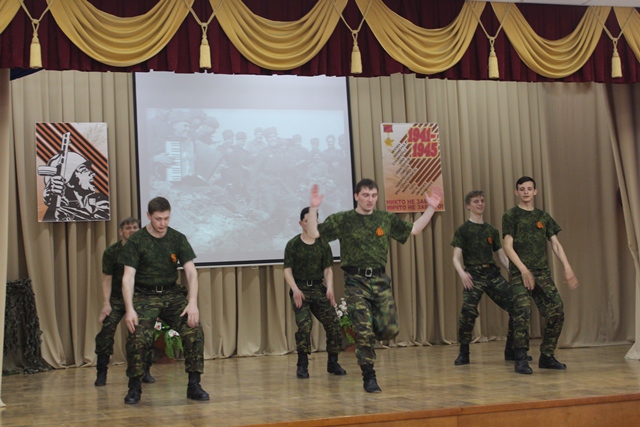 После открытия нового экспоната – БМ-13 «Катюша» праздничное мероприятие продолжилось концертом студентов-артистов театральной студии «33 кактуса» (художественный руководитель Елена Владимировна Степанова). В исполнении ребят и девушек прозвучали военные песни: «Весна 45 года», «Эх, путь-дорожка фронтовая…», «На безымянной высоте», «Катюша». Минутой молчания почтили собравшиеся память павших в годы Великой Отечественной войны, память ветеранов, кто не дожил до очередной годовщины Великой Победы. В конце мероприятия студенты стоя проводили почетных гостей: ветеранов, представителей ветеранских организаций.
