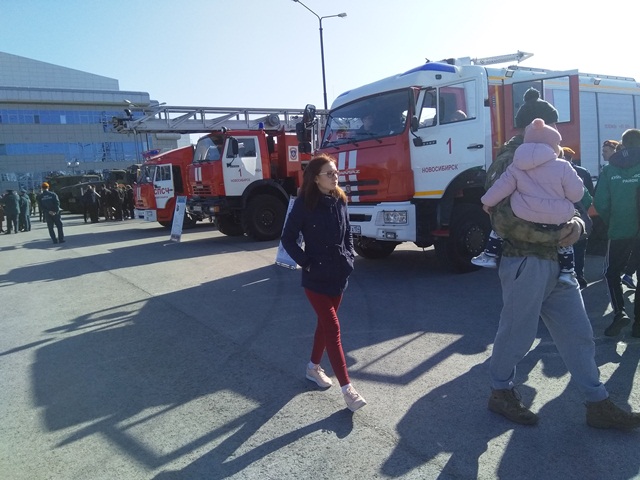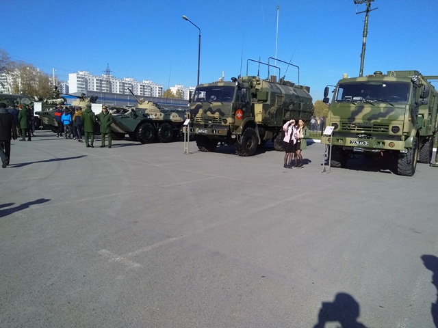 Программа праздника была очень обширной и интересной. Было организовано несколько площадок. На первой площадке были представлены образцы военной техники, которая используется в вооружённых силах и техника, используемая в подразделениях МЧС.