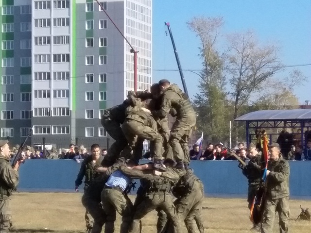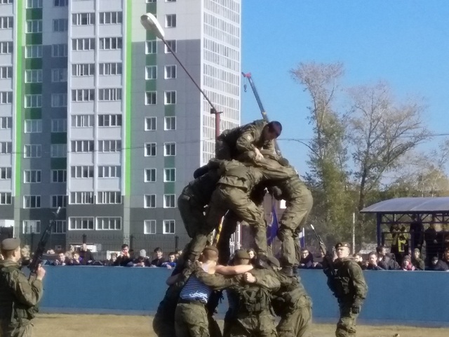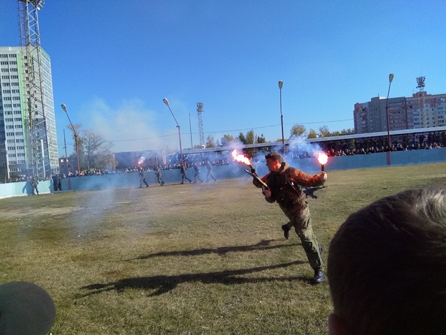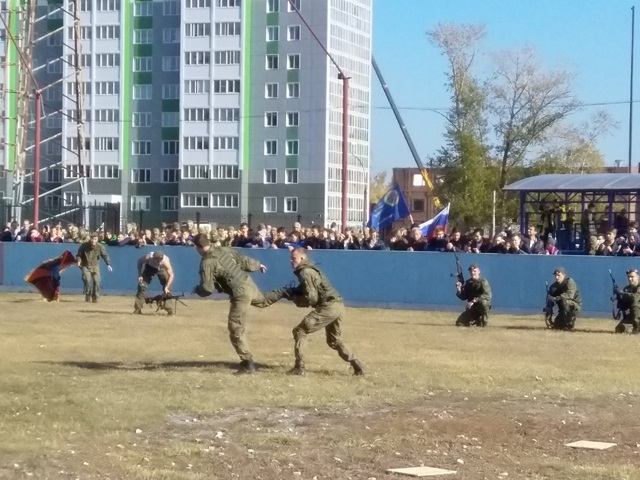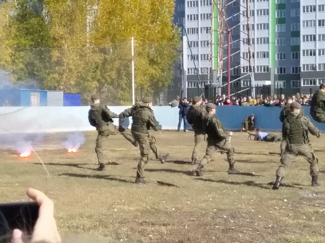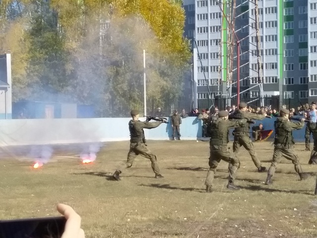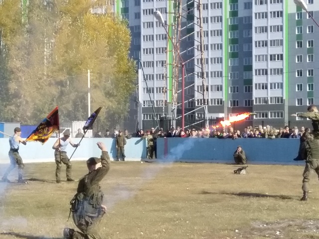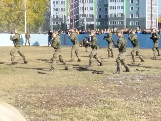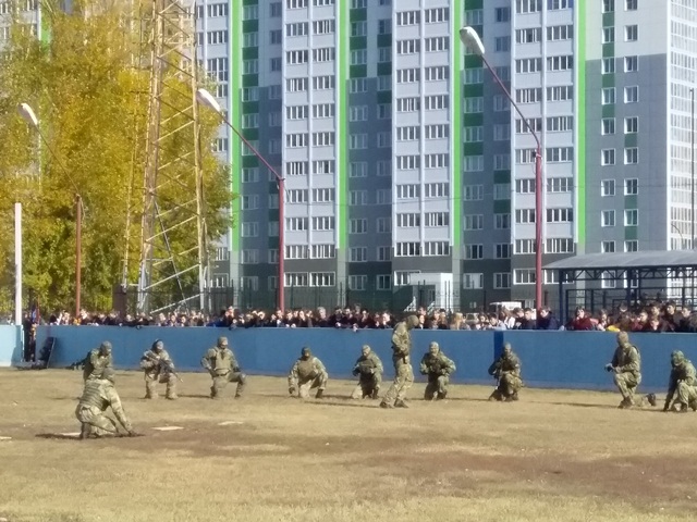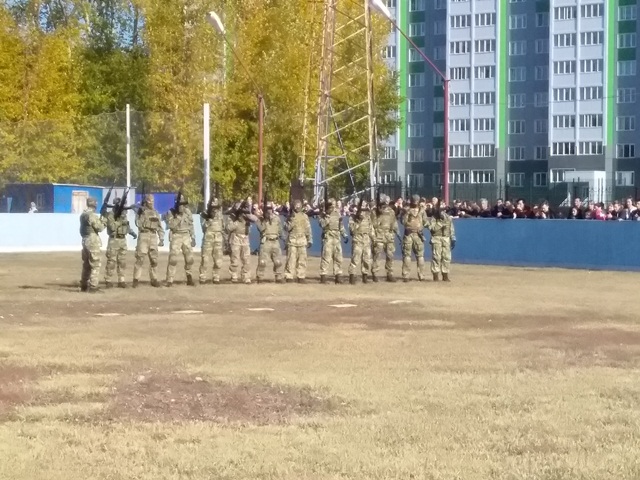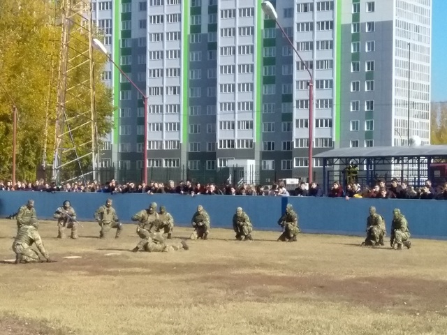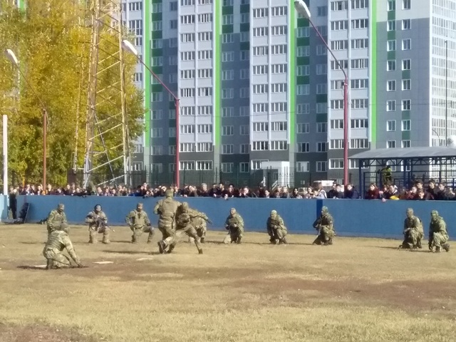 На второй площадке проводились показательные выступления подразделений специального назначения вооружённых сил, войск национальной гвардии, клубов военно патриотического воспитания.