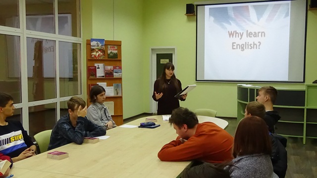 В дискуссии со студентами обсудили связь языка и культуры, их влияние на международные отношения общества. Учащиеся высказывали точку зрения о роли английского языка в мире, сферах его употребления. Ребята читали текст «Why do we learn the English language?» по цепочке, переводили и отвечали на вопросы по тексту, приняли участие в страноведческой викторине.