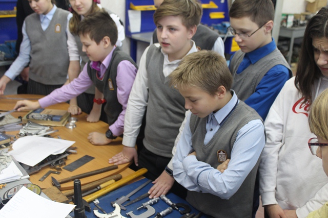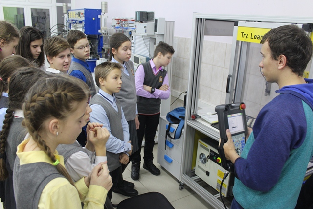 Студенты колледжа : Драчев Иван, Лаврищев Денис, Киснер Яков провели экскурсию по колледжу, рассказали о специальностях, познакомили с оборудованием, мастерскими, лабораториями. Огромный интерес школьники проявили к разрывной машине, предназначенной для проведения статических испытаний в кабинете контроля качества. Конечно же, манипулятор, роботы, мехатронные станции не оставили равнодушным ни одного гостя нашего колледжа. Затаив дыхание, ребята наблюдали за работами в новой лаборатории робототехники. А в ресурсном центе сварки им удалось не только увидеть работу сварщика, но и самим попробовать сварить свой первый шов на тренажере виртуальной сварки «Солдаматик».
