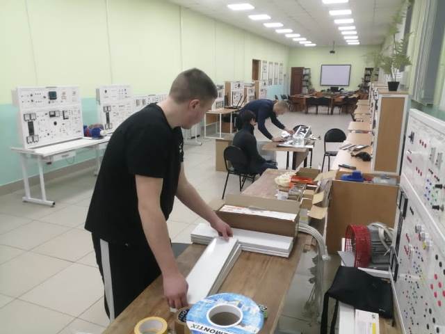Студенты Новосибирского технического колледжа им. А. И. Покрышкина принимают участие в сборке бактерицидных облучателей воздуха.