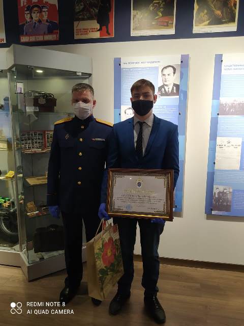 14 января 2021 года наш студент Прасолов Юрий Васильевич (группа С-211) был награжден Почетной грамотой Следственного комитета Российской Федерации «За мужество, самоотверженность и отвагу, проявленные в условиях опасной для жизни и здоровья обстановки, преодоление трудных жизненных ситуаций и готовность бескорыстно прийти на помощь» за подписью председателя СК РФ Бастрыкина Александра Ивановича.