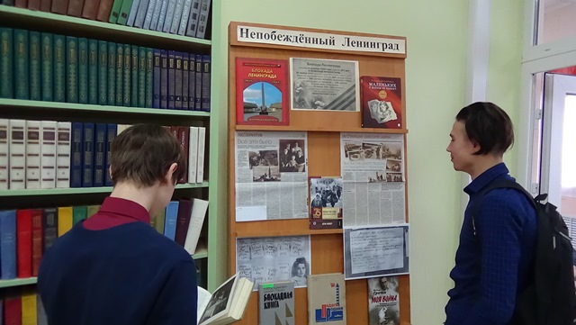 В читальном зале библиотеки организована книжно-иллюстративная выставка «Непобежденный Ленинград», на которой представлены книги и статьи о героической и трагической странице в истории нашей страны.