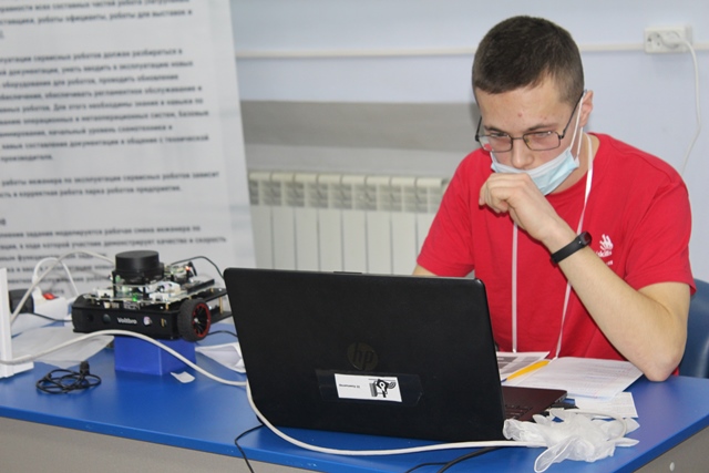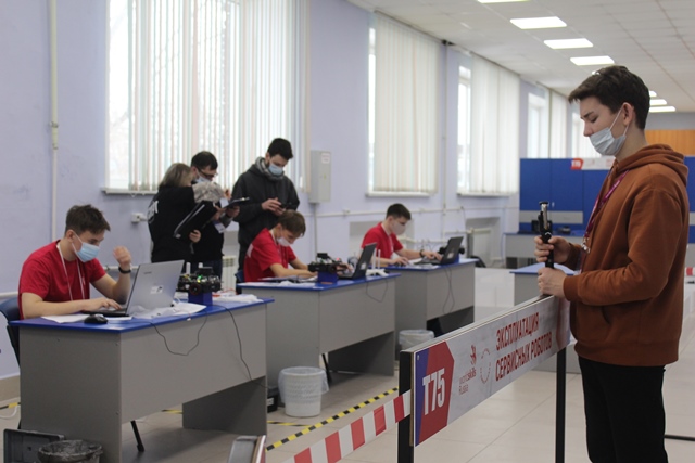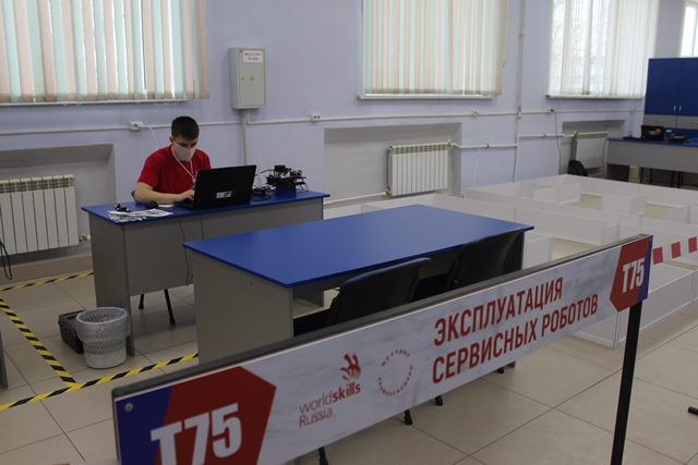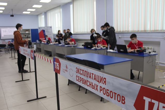 На конкурсной площадке компетенции «Эксплуатация сервисных роботов» в Новосибирском техническом колледже им. А. И. Покрышкина работают участники в возрастной группе от 16 до 22 лет.