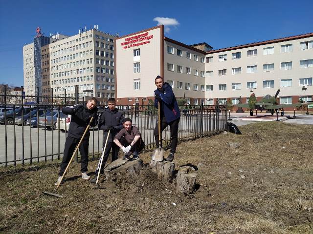 Апрель в Новосибирском техническом колледже им. А.И. Покрышкина - традиционное время уборки территории вокруг колледжа, а субботники - добрая традиция, объединяющая студентов и преподавателей.