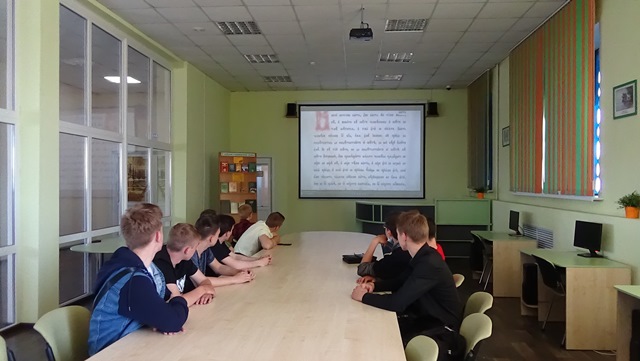 Сегодня на уроках русского языка преподаватель Румянцева Ольга Александровна показала студентам небольшой фильм «Апостолы слова (Святые Кирилл и Мефодий)», в котором рассказывается о биографии создателей славянской азбуки и создании грамоты на Руси братьями. После просмотра с интересом обсуждали вопросы чистоты русского языка.