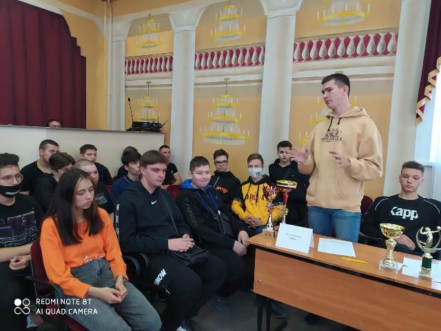 Открыла «Ярмарку увлечений» Степанова Елена Владимировна - заместитель директора по учебно-воспитательной работе. Во время рекламной акции участники кружков и секций не только рассказали первокурсникам о работе своих объединений, но и продемонстрировали награды, ими завоеванные. Кружковая и клубная работа в колледже ведется в целях всестороннего развития личности, организации свободного времени студентов с учетом их интересов, профилактики правонарушений и обеспечения самоуправления. Кружки профессиональной направленности, такие как «Мехатроника», «Мобильная робототехника», «Инженерная графика САD» помогают студентам лучше освоить выбранную профессию. Первокурсники с интересом слушали рассказ студентов второго курса Никиты Суднишникова и Дмитрия Каримова о работе спортивных секций. В колледже есть хорошая спортивная база для занятий физической культурой и спортом, работают спортивные секции: по волейболу, баскетболу, легкой атлетике, гиревому спорту, есть замечательный тренажерный зал. Есть в колледже и творческие кружки: театральная студия «33 кактуса», агитбригада «Надежда», вокальный ансамбль «Полет», пресс-центр журнала «Большая перемена». Перед первокурсниками выступили специалисты Центра культуры учащейся молодежи, которые пригласили ребят в народный коллектив ансамбля танца «Сибирь». В этом ансамбле уже занимаются студенты нашего колледжа, и среди первокурсников нашлись ребята, которые записались в этот коллектив.