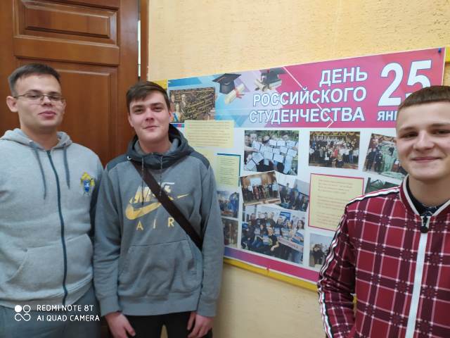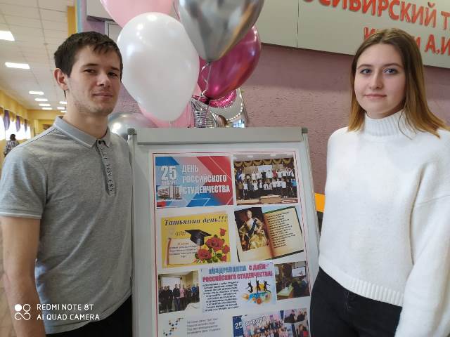 Сегодня студенческий Совет Новосибирского технического колледжа им. А.И.Покрышкина организовал в актовом зале колледжа торжественное заседание, на которое были приглашены старосты всех групп. Агитбригада «Надежда» вместе с вокальным ансамблем «Полет» и хореографическим ансамблем «Ритм» подготовили праздничный концерт. Заместитель директора по учебно-воспитательной работе Степанова Елена Владимировна вручила старостам групп грамоты для студентов, которые в первом полугодии показали хорошие успехи в учебе и принимали активное участие в общественной жизни колледжа. И после праздничного мероприятия старосты в группах поздравили своих однокурсников и вручили им грамоты. А еще сегодня ребята поздравили в колледже всех Татьян. Студенческая пора — это особый этап, один из самых запоминающихся периодов жизни каждого человека. Это время молодости, расцвета, время смелых идей и далеко идущих планов. Именно в студенческие годы происходит становление личности, формируются принципы и убеждения, закладываются основы будущих успехов.