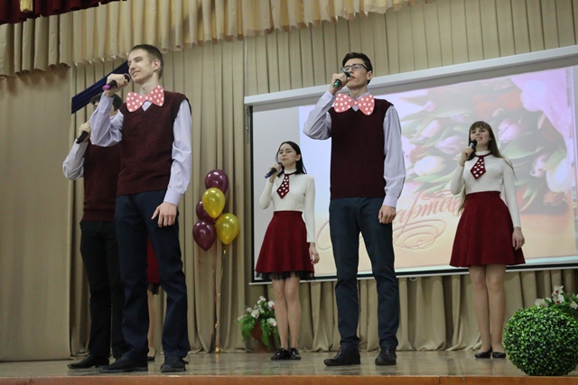 Студенческий Совет вместе с вокальным ансамблем «Полет», хореографической студией «Ритм» и агитбригадой «Надежда» подготовили праздничные поздравления. Творческие номера были торжественными, весёлыми и музыкальными. Вокальные номера перекликались с хореографическими, и каждый из них был настоящим подарком. Всем женщинам и девушкам: преподавателям, сотрудникам и студенткам были посвящены теплые слова поздравления, прозвучавшие из уст представителей сильной половины колледжа. Ведущие торжества: Александр Галкин и Георгий Скитович в течение всего концерта одаривали прекрасную половину колледжа трогательными стихотворными строчками и теплыми поздравлениями. А старосты групп преподнесли всем женщинам букеты цветов. Участники праздничной программы представили зрителям яркие творческие номера: ребята пели, танцевали, декламировали стихи. Зал встречал каждое выступление бурными аплодисментами. Преподаватели и студенты были в восторге от концерта. Это было видно по их глазам и улыбкам на лицах.