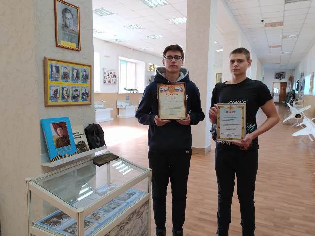 Уже несколько лет ребята собирали материал о выпускниках нашего учебного заведения – Героях Советского Союза: Иване Ивановиче Осинном и Евгении Григорьевиче Габове. Под руководством преподавателей: Железняковой С.Г. и Трубачевой Е.А. ребята оформили в музее экспозицию, посвященную этим героям. На основе материалов, собранным о героях, студенты гр. АТ-281: Мелякин Дмитрий и Моисеев Евгений, студентка гр. К-241 Золотарева Виктория выступили на научно-практической конференции «Покрышкинские чтения».