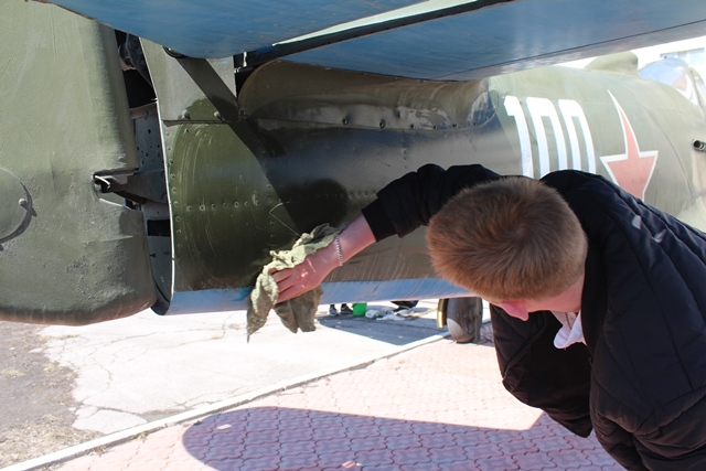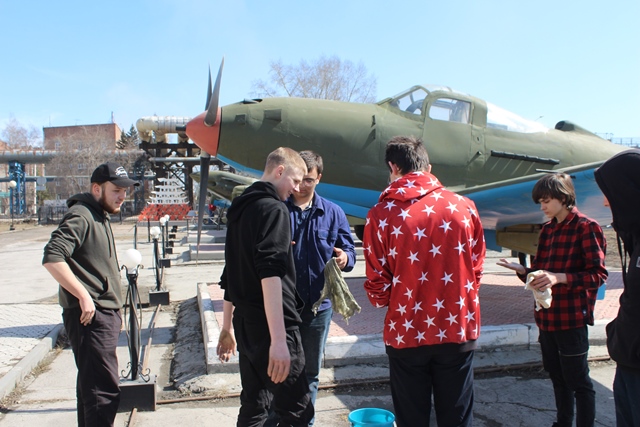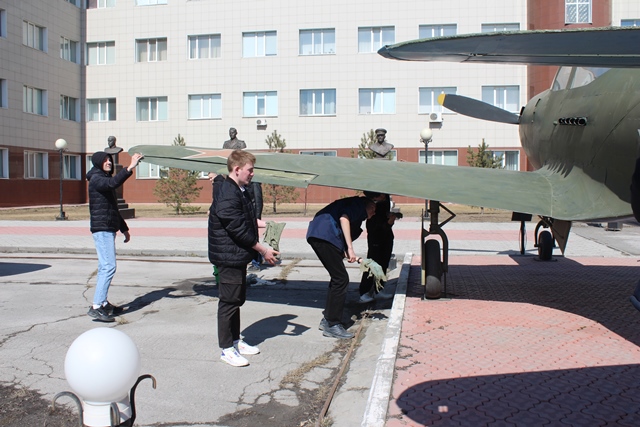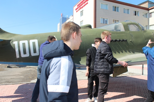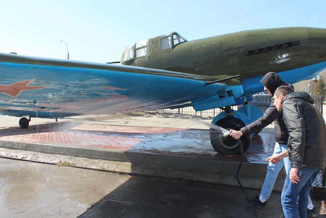 Ребята отмывали самолеты времен Великой Отечественной войны, установленные в парке «Патриот»: ИЛ-10, «Аэрокобра», МИГ-3. Самолеты необходимо подготовить к покраске. В первых числах мая в нашем парке «Патриот» состоится торжественное мероприятие, посвященное Дню Победы. В этот день в нашем парке соберутся ветераны колледжа, которые будучи мальчишками и девчонками учились и работали в мастерских РУ№1 (так раньше назывался наш колледж), выпуская продукцию для фронта. Придут в этот день и ветераны завода «Сибсельмаш», который также в годы Великой Отечественной войны выпускал продукцию для фронта. И конечно же в этот день студенты колледжа, участники проекта «Бессмертная эскадрилья», выйдут на торжественных митинг, посвященный Дню Победы с портретами летчиков Героев Советского Союза - земляков А. И. Покрышкина. Для летчиков всегда первым делом были самолеты. Поэтому каждую весну студенты колледжа приводят в порядок мемориально-исторический парк «Патриот» и военную технику, которая была восстановлена в мастерских нашего колледжа предыдущим поколением студентов.