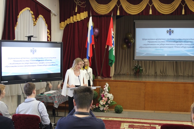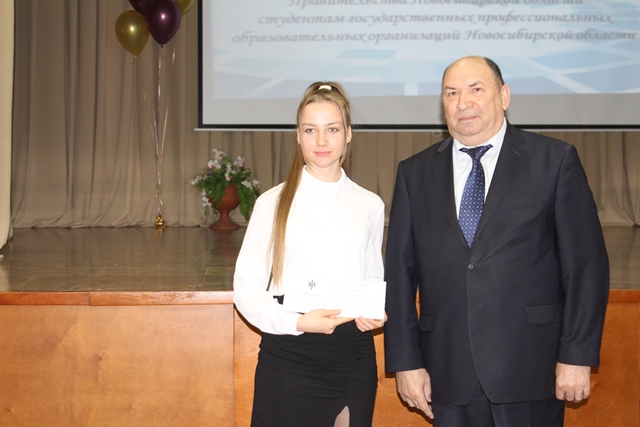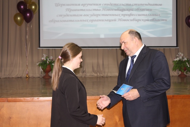 19 апреля в актовом зале Новосибирского технического колледжа им. А.И. Покрышкина состоялась торжественная церемония вручения свидетельств стипендиатам регионального правительства обучающимся профессиональных образовательных учреждений Новосибирской области. Свидетельства стипендиатов талантливым студентам вручил заместитель министра образования Новосибирской области Андрей Николаевич Головнин.