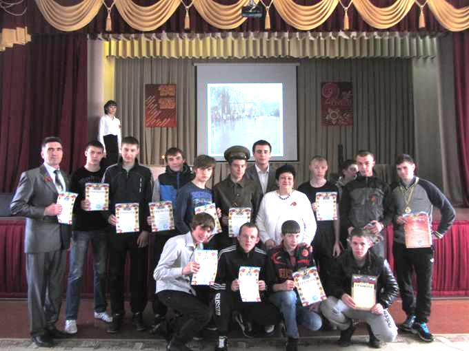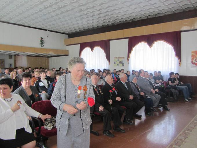 250 выпускников и работников техникума ушли добровольцами на фронт, Многие из них были награждены орденами и медалями. Трое получили звание Героя Советского Союза - это Габов Евгений Григорьеви, Домбровский Иван Александрович, Осинный Иван Иванович. А Александр Иванович Покрышкин стал трижды Героем Советского Союза. Обо всем об этом вспоминали ветераны, и, глядя на наших студентов, выступающих на сцене, вспоминали они и о том, как были молодыми, и как встречали тот первый, самый долгожданный День Победы.