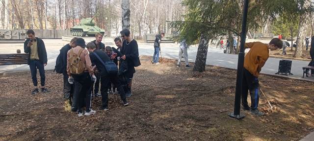 29 апреля группа Э-121 вместе с мастером производственного обучения Дмитрием Сергеевичем Поповым приняла участие в акции «Трудовой десант», посвященной подготовке мемориального комплекса «Монумент Славы» ко Дню Победы.