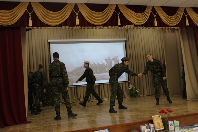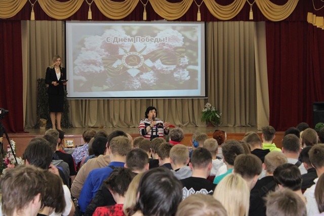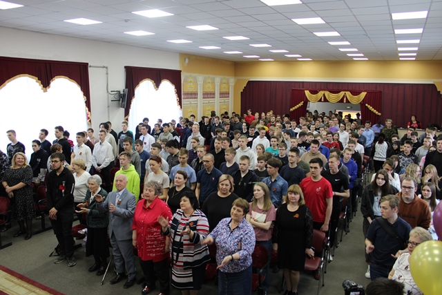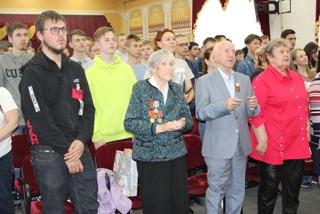 Мероприятие было подготовлено студентами-артистами театральной студии «33 кактуса» (художественный руководитель Елена Владимировна Степанова). В исполнении ребят и девушек прозвучали военные песни, был показан спектакль по мотивам поэмы «Василий Теркин» А. Т. Твардовского. Минутой молчания почтили собравшиеся память павших в годы Великой Отечественной войны, память ветеранов, кто не дожил до очередной годовщины Великой Победы. В конце мероприятия ветераны, гости, студенты и педагоги вместе сфотографировались. Все присутствующие в зале отметили, что концерт получился душевным, лиричным, трогательным, и, конечно, патриотичным.