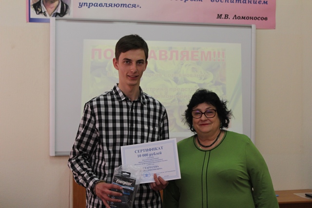 В этом году на чемпионате студенты нашего колледжа завоевали самое большое количество наград среди ССУЗов Новосибирской области. Во время чаепития ребята поделились своими впечатлениями о чемпионате, рассказали, с какими трудностями они столкнулись во время соревнований, выразили желание еще раз принять участие в подобных состязаниях. Галина Федоровна поблагодарила ребят и пожелала им дальнейших успехов в освоении профессии и побед во всех начинаниях. В завершении встречи всем участникам чемпионата были вручены подарки и Сертификаты на получение денежного вознаграждения.