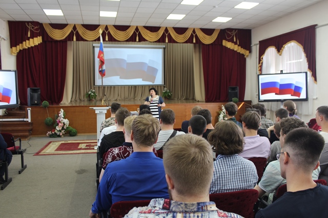 В актовом зале колледжа состоялось торжественное мероприятие, посвященное официальным символам Российской Федерации: флагу, гербу, гимну.