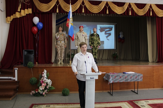 Об истории возникновения и традициях, принятых в нашей стране в этот день, собравшимся в зале рассказал студент группы СВ-114 Александр Свинаренко: «День России - один из самых молодых государственных праздников. Сначала он назывался Днем принятия декларации о государственном суверенитете России и только с 2002 года обрел свое нынешнее название. Отмечают День России 12 июня, в 2022 году он приходится на воскресенье. Именно 12 июня 1990 года I Съезд народных депутатов принял Декларацию о государственном суверенитете РСФСР, в которой провозглашалось равноправие политических партий и общественных организаций, был принят принцип разделения властей, определилось верховенство Конституции и законов РСФСР на всей ее территории. В 1995 году 12 июня прошли первые торжественные мероприятия. В 1998 году президент в телеобращении к россиянам предложил называть этот праздник Днем России, что и было официально сделано в 2002 году. С 1995 года в этот день в Кремле глава государства традиционно вручает государственные премии в области науки, технологий, литературы и искусства. С 2001 года было положено начало обязательным салютам, завершающим большой концерт на Красной площади. В этот день было принято новое название нашей страны - Российская Федерация (Россия), Декларация о государственном суверенитете дала отсчет истории государства, которое основано на гражданских свободах и верховенстве закона».