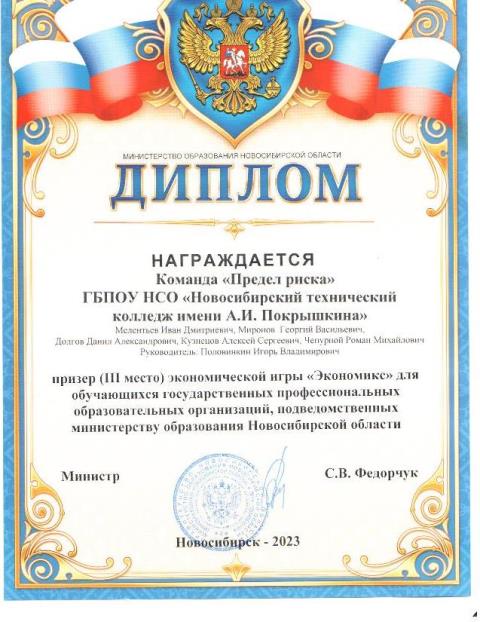 12 мая 2023 года команда из 5 студентов группы СВ-214 приняла участие в областной экономической игре «Экономикс» для обучающихся профессиональных образовательных организаций, подведомственных министерству образования Новосибирской области.