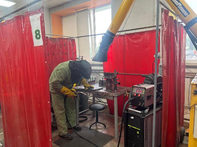 Сегодня конкурсанты выполняют Модули А,В – контрольные образцы и Модуль Г –сосуд под давлением. Способ сварки – частично механизированная плавящимся электродом в защитном газе. Модули Д,Е - контрольные сварные образцы из алюминиевого сплава и нержавеющей стали .Эксперты продолжают свою работу по контролю и дальнейшей оценке выполненных модулей. Атмосфера на площадке рабочая и очень спокойная.