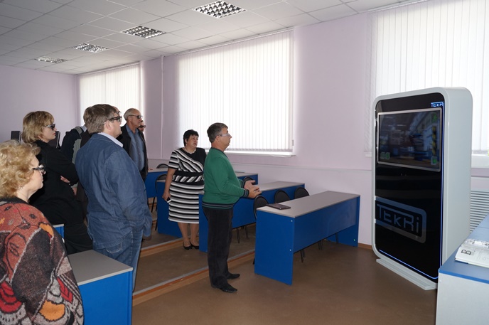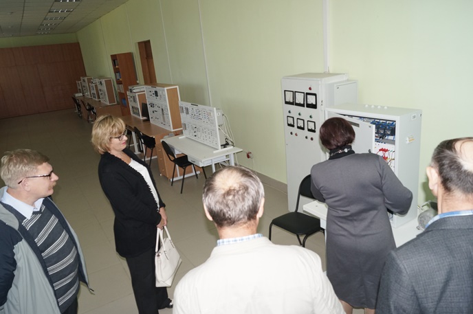 С интересом отметили наличие в кабинете дипломного проектирования помимо компьютеров с компас 3D еще и рабочий кульман. Очень заинтересовали лабораторные стенды по автоматизации и гидравлике. В кабинете материаловедения обратили внимание на качественные измерительные приборы, которым уже не один 10-к лет, но они до сих пор актуальны, исправны и на них учатся студенты. Очень удивила система интерактивного обучения Текри*. А во время посещения лаборатории, где установлены Солдаматики*, с азартом попробовали на них сваривать металл.