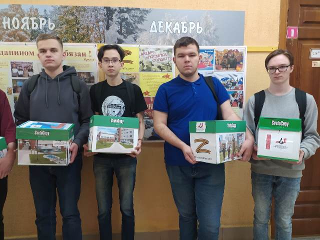 Студенты и преподаватели колледжа в очередной раз приняли участие в патриотической акции «Посылка солдату. Посылки бойцам, находящимся на передовой: теплые вещи, носки, перчатки, сладкие подарки и, конечно же, письма с пожеланиями скорейшей победы, активисты штаба #МЫВМЕСТЕ отвезли в приемный пункт местного отделения партии «Единая Россия» Ленинского района г. Новосибирска. Собирая посылки, ребята представляли, как наши бойцы наденут теплые носки, попьют чай с конфетами и прочитают письма. Очень студентам хочется, чтобы хоть одна посылка попала землякам - новосибирцам. Ребята желают всем бойцам и особенно своим землякам, брать пример с А.И.Покрышкина - легендарного летчика, трижды Героя Советского Союза.