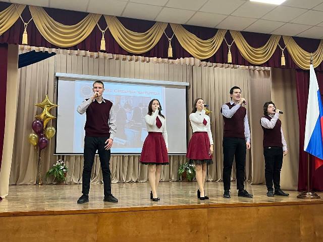 С днем рождения колледжа поздравила преподавателей и студентов замдиректора Елена Владимировна Степанова. Студенты колледжа, участники вокальной студии «Полет и агитбригады «Надежда» порадовали зрителей праздничными номерами.