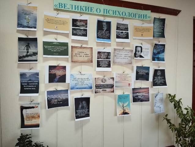 На 4 этаже колледжа в фотозоне пресс-центра колледжа «Большая перемена» оформлена выставка «Великие о психологии» с цитатами на психологическую и мотивационную темы.