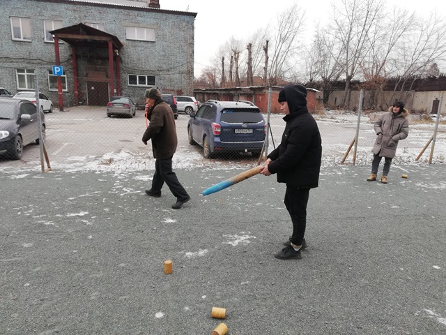 Команды, согласно жеребьёвке, битами пытались выбить из города наибольшее количество «рюх».