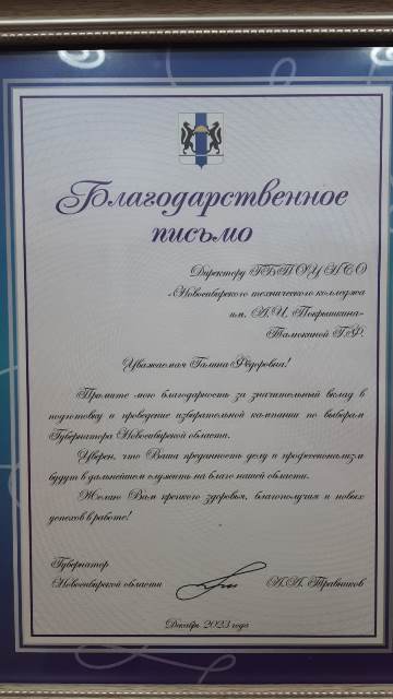 БЛАГОДАРСТВЕННОЕ ПИСЬМО ГУБЕРНАТОРА ДИРЕКТОРУ КОЛЛЕДЖА – ПОЗДРАВЛЯЕМ!