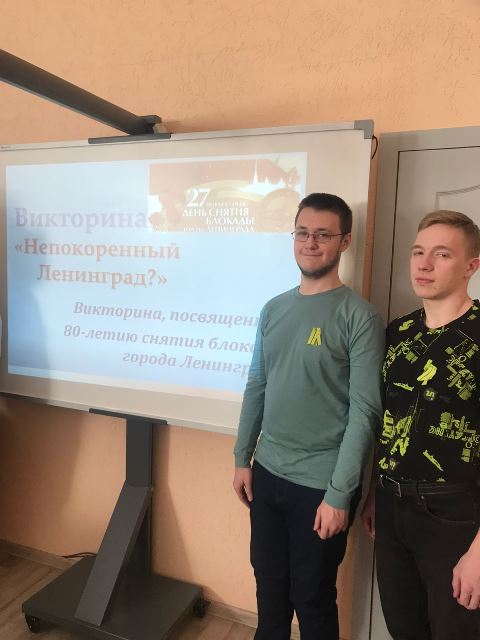 Ребята с интересом готовились к викторине, познакомились со множеством фактов, узнали, как мужественно сражался осажденный врагом город, о стойкости его жителей, узнали о трагических событиях того времени. Не остались равнодушными, удивлялись героизму людей, их вере в Победу. Большое впечатление на студентов произвел вопрос о человеке, выпекавшем хлеб в осажденном городе, который не съел ни крошки и умер от истощения прямо на работе. Это Кютинен Даниил Иванович. Сложно представить, каково было голодному человеку выпекать хлеб и при этом не взять себе даже кусочка! Для Кютинена совесть оказалась дороже жизни и его поступок - это настоящий героизм. Его имя внесено в книгу памяти блокады Ленинграда. Блокада Ленинграда навсегда останется одной из самых героических страниц истории, она всегда будет олицетворением несокрушимой силы духа и воли к Победе.