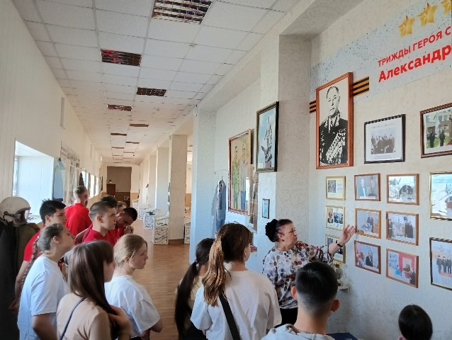 Ребята приехали в Новосибирск, чтобы подготовиться к главному событию страны и пройти строем с товарищами по главной площади столицы Сибири. В музее гостей встретила заместитель директора по учебно-воспитательной работе Степанова Е. В., она провела ребят по залам, рассказала о жизни и боевом пути трижды Героя Советского Союза А.И.Покрышкина, о его однополчанах. С особым вниманием юнармейцы знакомились с экспозицией, посвященной СВО, рассматривали приспособления «кошки», которые студенты колледжа изготавливают по заказу саперов, сфотографировались с флагом, привезенным из зоны СВО, с автографами бойцов–сибиряков. А потом ребята посетили мемориально-исторический парк «Патриот», где познакомились с военной техникой времен Великой Отечественной войны, восстановленной в мастерских колледжа. На прощанье юнармейцы поблагодарили Степанову Е.В. и сказали, что они узнали много нового о легендарном летчике А.И.Покрышкине.