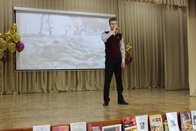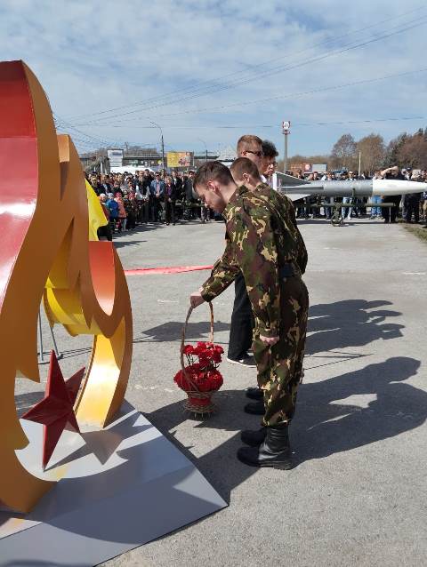 Блинов Сергей - студент группы СВ-114 в своем обращении от имени студентов, обучающихся сегодня в колледже, говорил о том, что нынешнее поколение студентов свято чтит подвиги прошлых поколений учеников и преподавателей, продолжает и хранит традиции нашего учебного заведения, а также всячески поддерживает воинов, которые сегодня воюют с фашизмом.